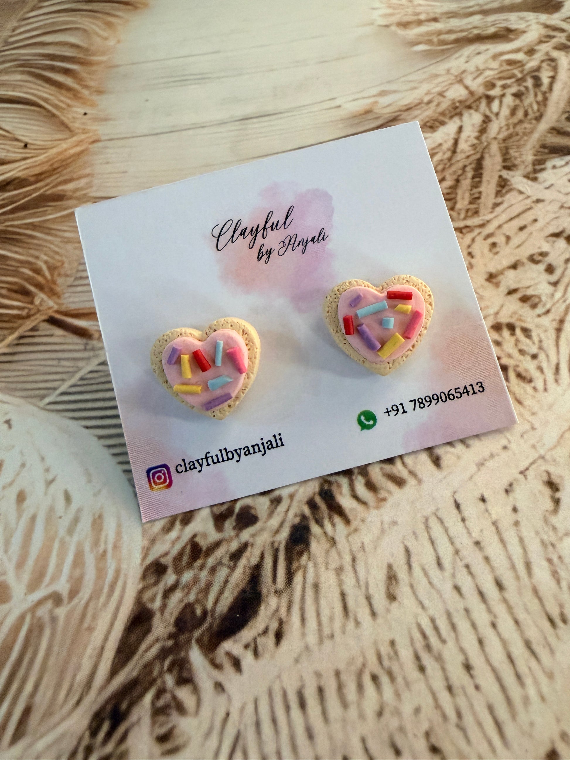 Handcrafted heart-shaped studs inspired by sweet treats, finished with sprinkle details. Lightweight, playful, and irresistibly charming — perfect for adding a soft pop of joy to your everyday looks or gifting someone special.